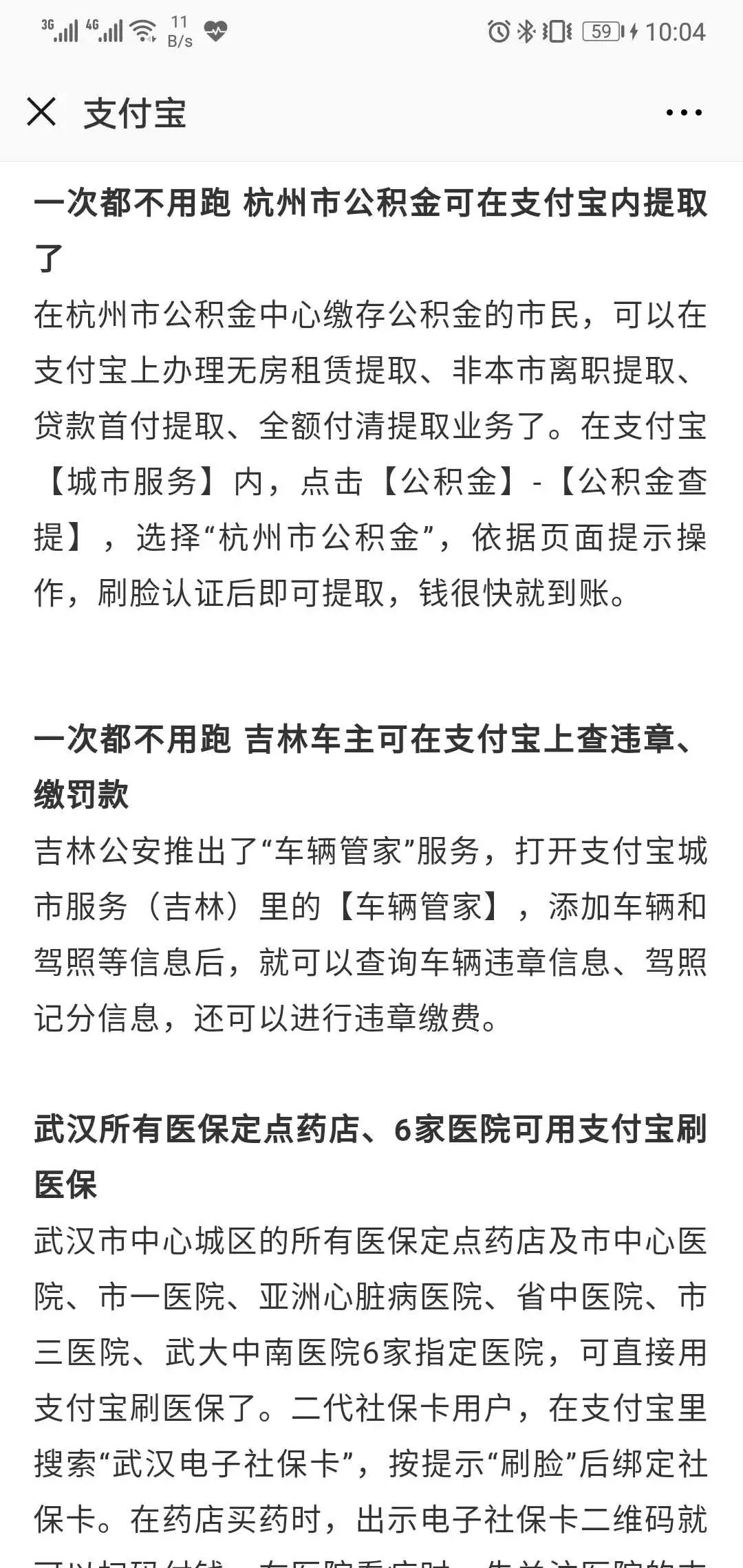 驾校报名缴费小程序,房贷计算器小程序,杭州公积金在支付宝内提取,吉林车主可以支付宝上查询违章,武汉6家医院可用支付宝刷医保,义乌全部公交可以使用支付宝,郑州上线刷脸买药,支付宝可通知12306票务信息。